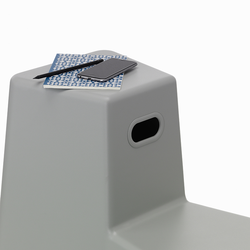 Imaginé par Konstantin Grcic pour la marque Vitra, Stool-Tool est une pièce originale et fonctionnelle, réunissant chaise et table en un seul objet. Il offre différentes positions et orientations d'assise. Le dossier de Stool-Tool en forme de bureau peut servir de petite surface de travail ou de rangement. Outil de travail polyvalent, Stool-Tool est un meuble de bureau multifonctionnel qui apporte une valeur ajoutée à tout espace de travail. Il se transporte facilement grâce à sa poignée et peut être empilé jusqu’à 10 pièces pour optimiser le rangement.