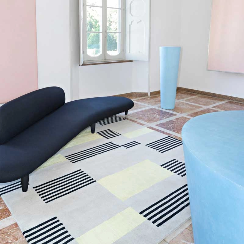 Hello Sonia est une collection de tapis dessinée par le duo StudioPepe pour la marque cc-tapis. Déclinés en deux tailles et disponibles en plusieurs coloris, les tapis Hello Sonia se distinguent par leur motif qui alterne des touches de couleur et des lignes noires sur un fond clair. Le résultat est un tapis à la fois graphique et léger qui se démarque sans s’imposer. Réalisés en laine de l’Himalaya et en soie, les tapis Hello Sonia sont tissés à la main au Népal.