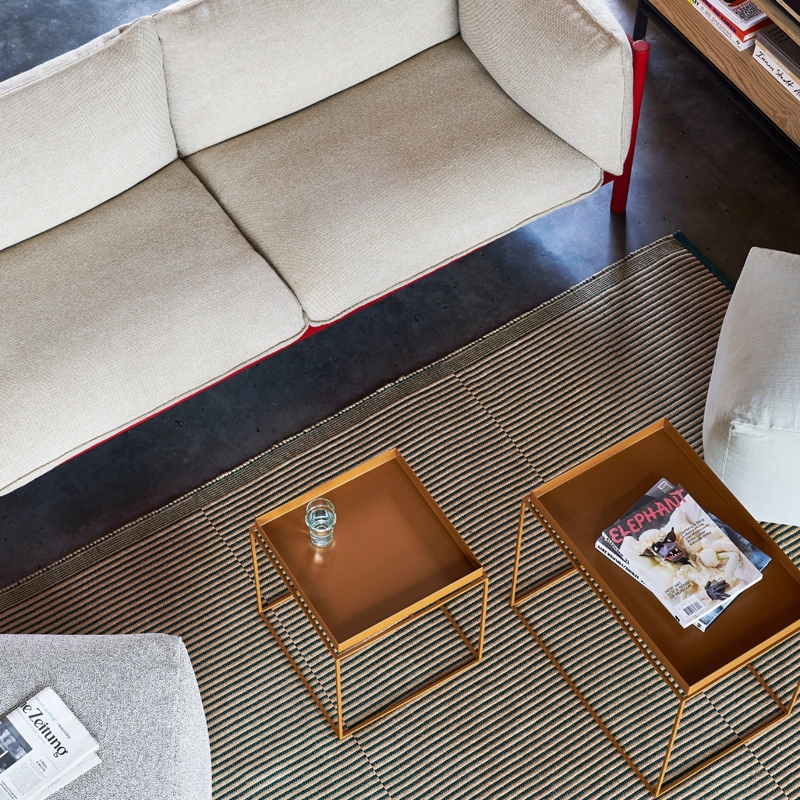 Tissé à plat à partir d'un mélange de jute naturelle et de coton, le tapis de Julie Richoz crée une expression nettement brute et élégante qui est renforcée par son aspect artisanal. Le tapis comporte un support antidérapant qui préserve la forme et minimise le mouvement du tapis. Edité par la marque Hay, il est disponible en différentes tailles avec une variété d'options de couleur.