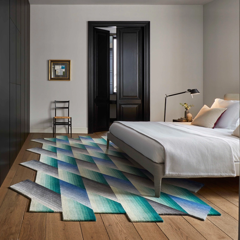 Avec Mirage, Patricia Urquiola crée pour Gan une série de tapis aussi élégante qu’étonnante. Couleur, géométrie et superposition sont combinées pour un résultat captivant. Les différents dégradés de couleur donnent de la profondeur au motif, tandis que les bords irréguliers le démarque des tapis traditionnels tout en facilitant son intégration harmonieuse dans une pièce. Edité par Gan, le tapis Mirage est entièrement noué à la main en pure laine de Nouvelle-Zélande.