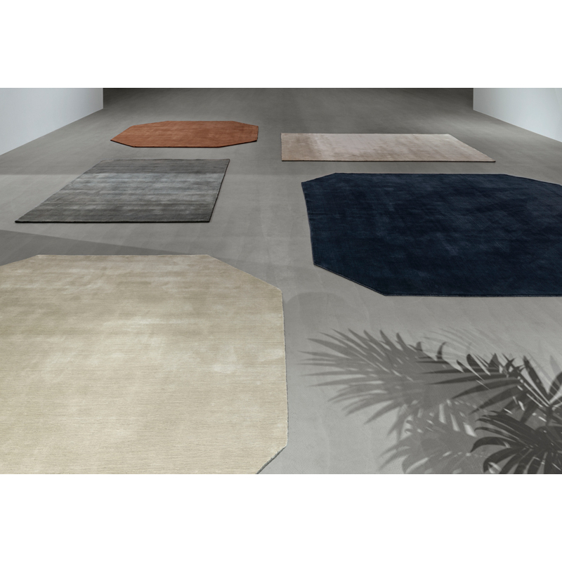 the Moor – la lande en anglais – comprend plusieurs formes et tailles qui se déclinent en différentes couleurs chaleureuses. Le choix de coloris unis plutôt que des motifs permet de connecter les divers éléments d’une pièce, créant un sentiment de proximité. De plus, la technique traditionnelle utilisée de tissage à la main, s’exprime d’une manière nouvelle et ajoute de la densité aux tapis.