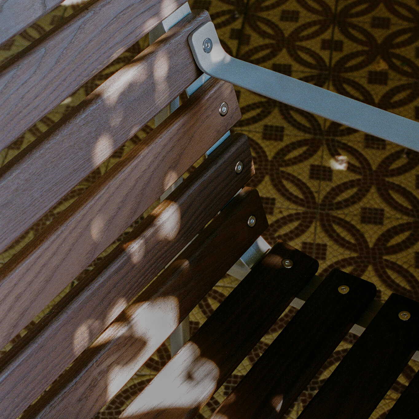 Frêne massif traité thermiquement avec huile de cire, Aluminium moulé laqué pour l'extérieur