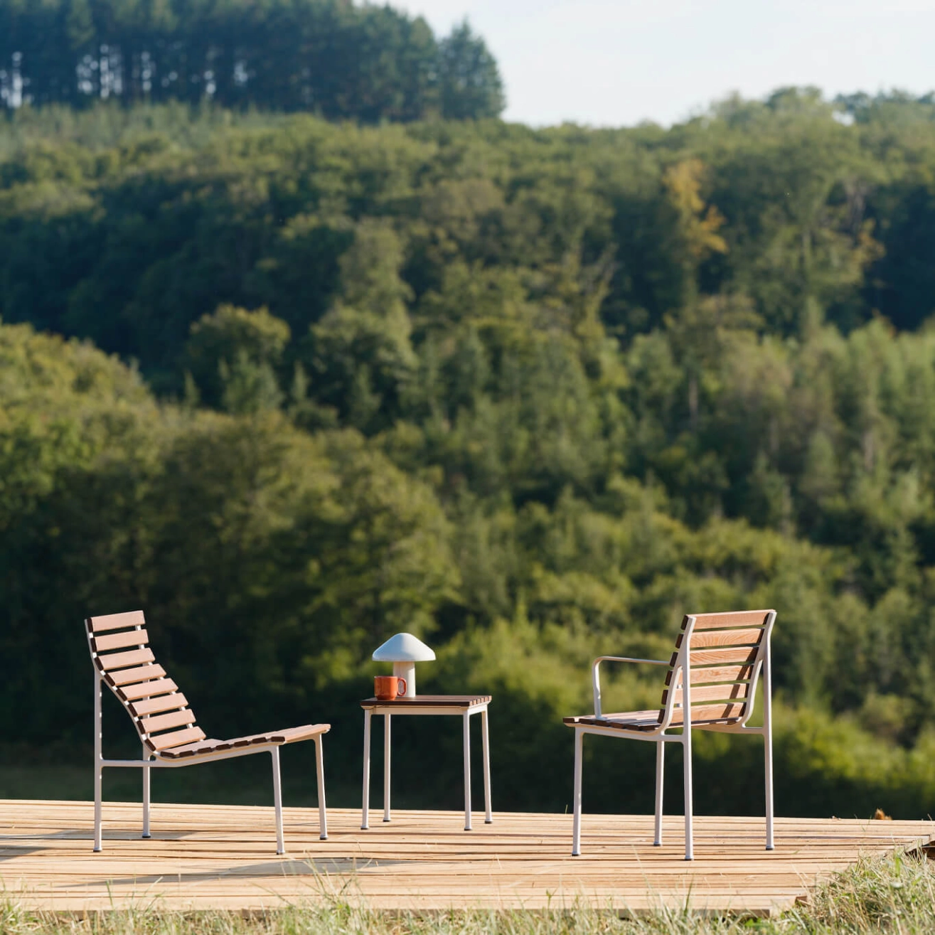 Frêne massif traité thermiquement avec huile de cire, Aluminium moulé laqué pour l'extérieur