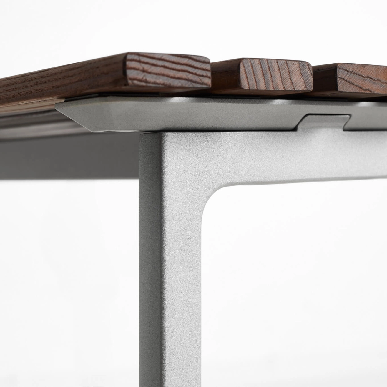 Frêne massif traité thermiquement avec huile de cire, Aluminium moulé laqué pour l'extérieur