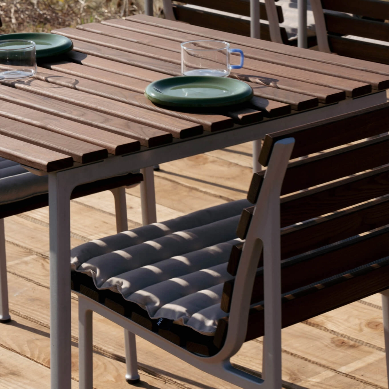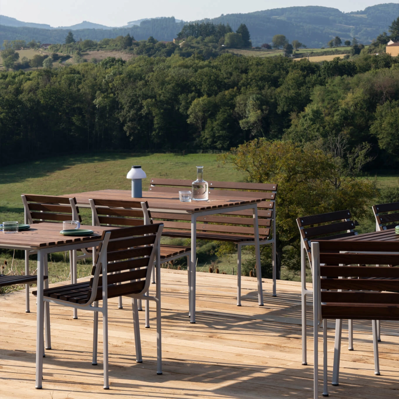 Conçue pour Hay par Erwan Bouroullec, la table Traverse fait partie d'une collection de mobilier d'extérieur conçue pour s'intégrer naturellement dans n'importe quel environnement. Composée d'un cadre en aluminium moulé sous pression et d'un plateau à lattes en frêne traité à la chaleur, cette table allie une construction robuste à une expression accueillante qui se patine naturellement avec le temps, devenant ainsi encore plus belle. Avec son esthétique équilibrée et ses différentes options de tailles, la table Traverse peut être associée aux autres meubles de la même collection pour les repas et les moments de convivialité dans une grande variété d'espaces privés et publics.