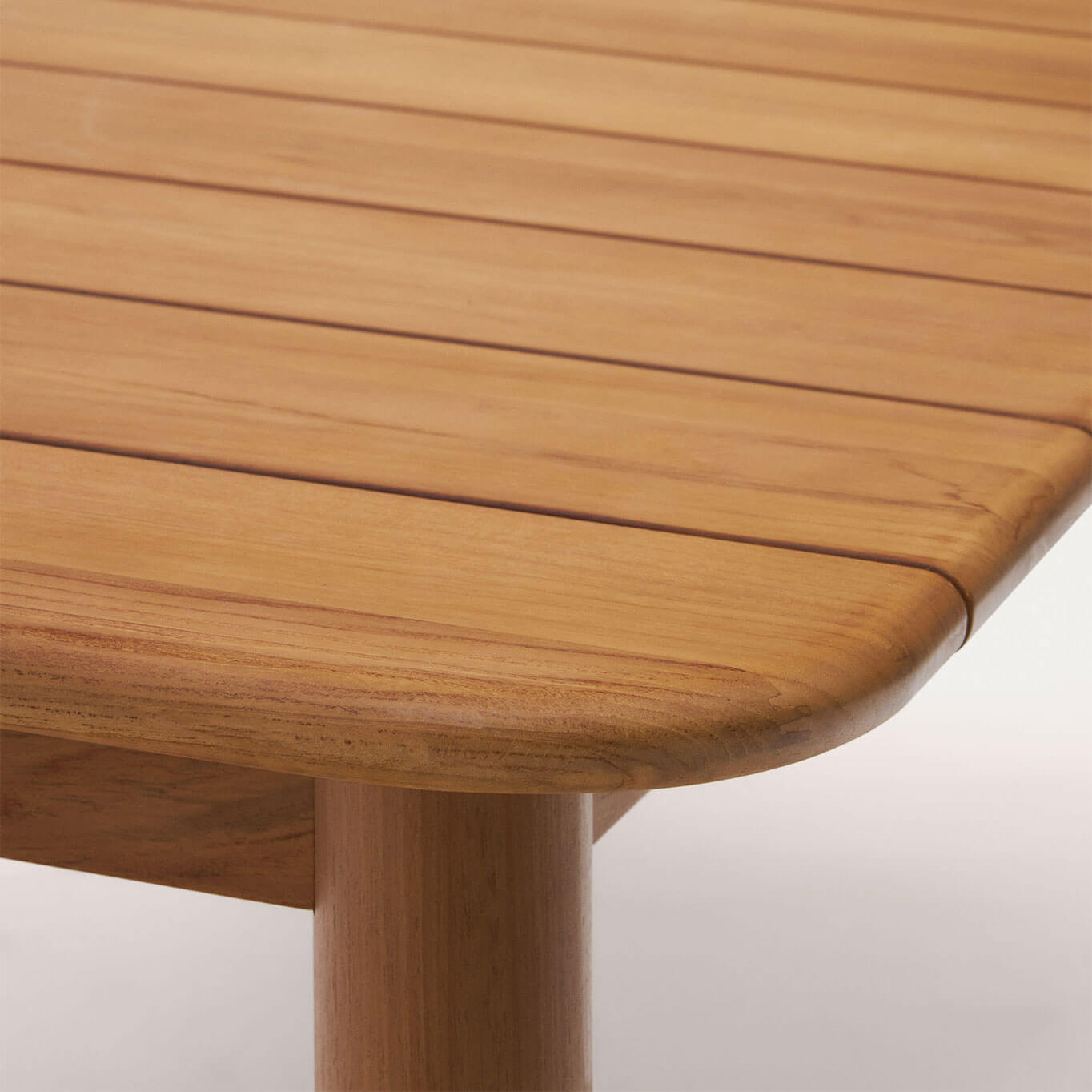 Kave Home incarne parfaitement l’alliance entre design contemporain et robustesse naturelle. Conçue en bois massif de teck FSC 100%, avec des dimensions de 220-294 x 70 cm, elle apporte élégance, chaleur et caractère à vos espaces intérieurs comme extérieurs. Sa structure horizontale affirmée, ses proportions harmonieuses et ses courbes étudiées offrent une impression de stabilité raffinée, tout en transmettant confort, sérénité et convivialité. Pensée en exclusivité par Made Studio pour Kave Home, la collection Turqueta se distingue par ses lignes épurées et contemporaines, ainsi que par la méticulosité des finitions et la qualité des matériaux, reflétant un savoir-faire artisanal d’exception. Chaque détail traduit une alliance subtile entre légèreté visuelle et solidité, faisant de cette table un élément central de votre décoration, capable de sublimer tout type d’espace avec style, modernité et fonctionnalité.