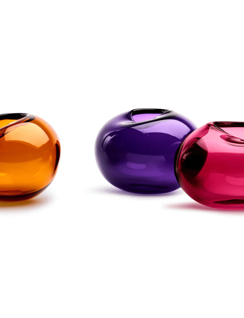 Après les Pebbles dessinés pour When Objects Work, Kate Hume crée les vases Caillou qui reprennent la même forme que sa grande sœur mais dans une version réduite. Prévus pour être exposés en groupe, ils sont vendus par set de trois pièces de différentes couleurs. Les jeux d'ombres et les superpositions de couleurs de ces vases font penser à un bijou pour l'intérieur. Chaque Caillou en verre soufflé est fabriqué de façon artisanale et présente une forme douce et sensuelle qui accueille vos fleurs et les magnifie. Une idée de cadeau élégante et colorée.
