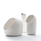 Ô est une famille d'accessoires en terre cuite composée d'un vase, d'une carafe et d'une corbeille. Comme un trio de personnages très expressifs, ensemble ils paraissent chanter, s'égosiller, bavarder... Trapu, menu ou charnu... Leur morphologies est bien distincte mais leur allure généreuse et solide les uni. Dessinés par Ionna Vautrin pour Moustache, ces objets aux lignes douces s'intègrent dans différentes pièces de la maison, comme la cuisine, le salon ou la salle à manger.