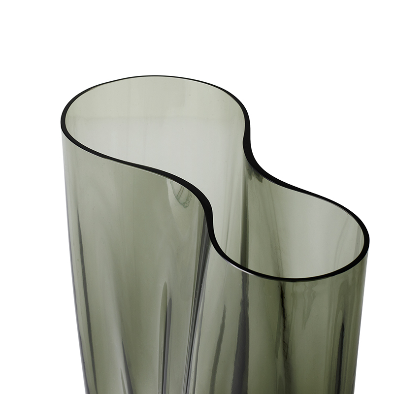 vase Aer est parfait aussi bien seul qu’en duo pour exposer des fleurs ou des branches. La surface tactile et ondulante du verre, est produite selon un procédé précis où le verre est soufflé à la bouche dans un outil à deux cavités qui révèle la forme complexe en trois dimensions. Le