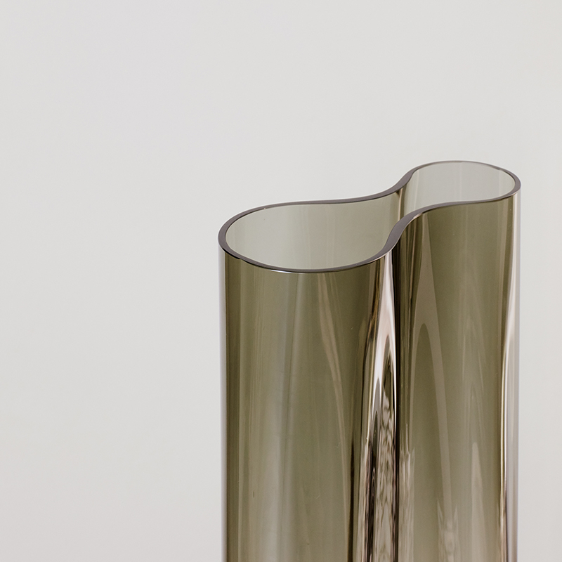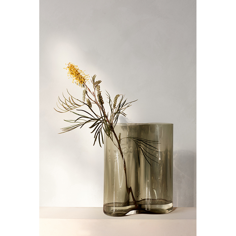 Menu, apporte une touche sculpturale dans l’espace. Tirant son nom du mot latin pour « air » ou « vapeur », le vase à la silhouette asymétrique ondule comme un liquide, apportant ainsi une qualité tactile presque éthérée au verre. Disponible en deux tailles, le