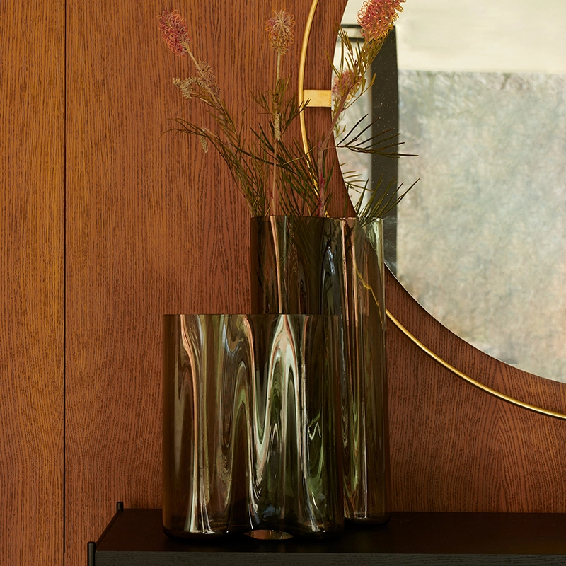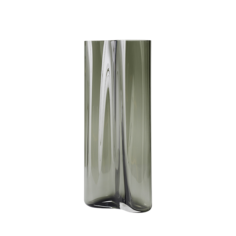 Menu, apporte une touche sculpturale dans l’espace. Tirant son nom du mot latin pour « air » ou « vapeur », le vase à la silhouette asymétrique ondule comme un liquide, apportant ainsi une qualité tactile presque éthérée au verre. Disponible en deux tailles, le