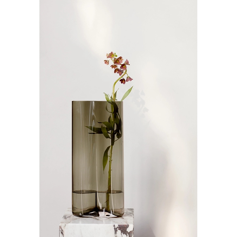vase Aer est parfait aussi bien seul qu’en duo pour exposer des fleurs ou des branches. La surface tactile et ondulante du verre, est produite selon un procédé précis où le verre est soufflé à la bouche dans un outil à deux cavités qui révèle la forme complexe en trois dimensions. Le