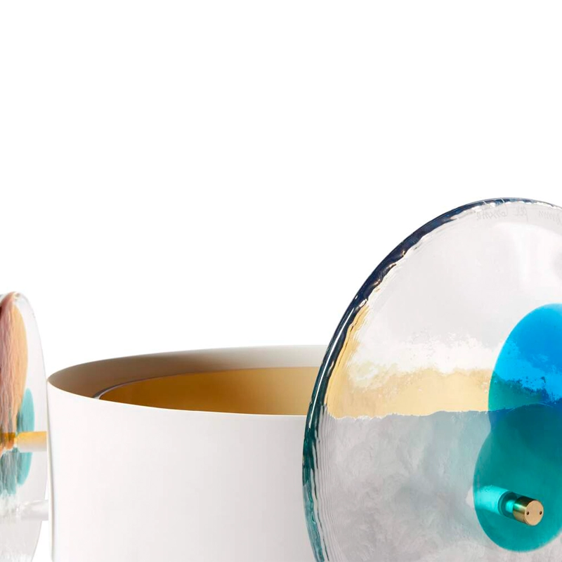 vases ColourDisc est réalisée en laiton peint et arbore des décorations en verre fixées par deux épingles en laiton. À l'intérieur de cette structure, un