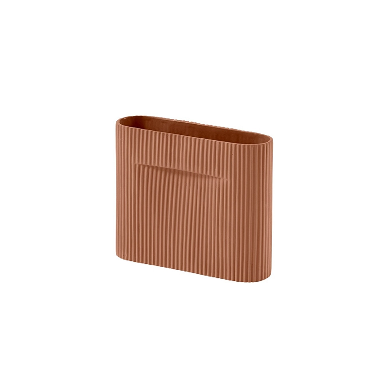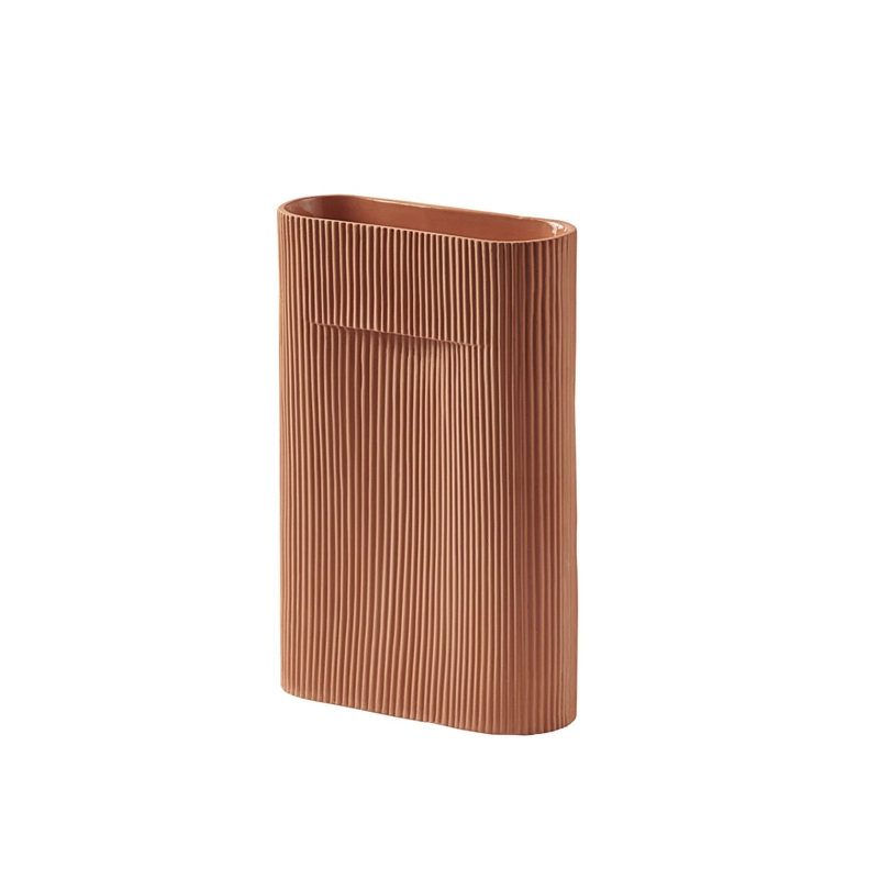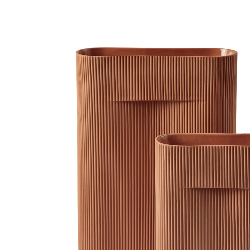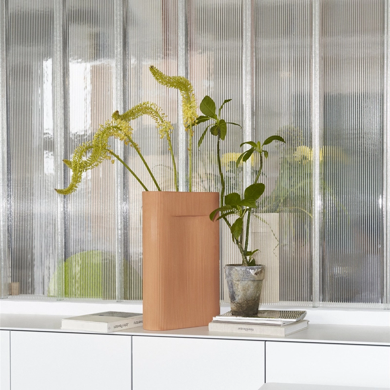 Ridge a été inspiré par une porte parisienne découverte par le studio Kaksikko, lors d'un voyage qui avait pour but d’inspirer la création d’un nouveau vase. Fait à la main en terre cuite, le vase