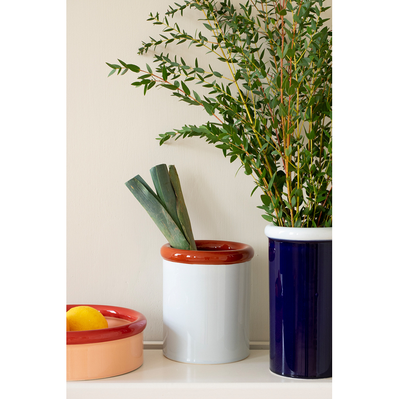 Dessinée par Julien Renault pour la marque Nine, Rod est une collection de récipients en céramique fabriqués et peints à la main. Cette série s’inspire des techniques traditionnelles de poterie en colombins. La famille Rod comprend une vase, un pot et une coupe, chacun disponible dans deux combinaisons de couleurs. Ces pièces colorées peuvent être utilisées seules pour accueillir des fleurs, des ustensiles de cuisine ou des fruits, mais elles peuvent aussi être associées les unes avec les autres pour créer un ensemble décoratif. La réalisation à la main apporte un caractère unique à chaque pièce de la collection Rod.