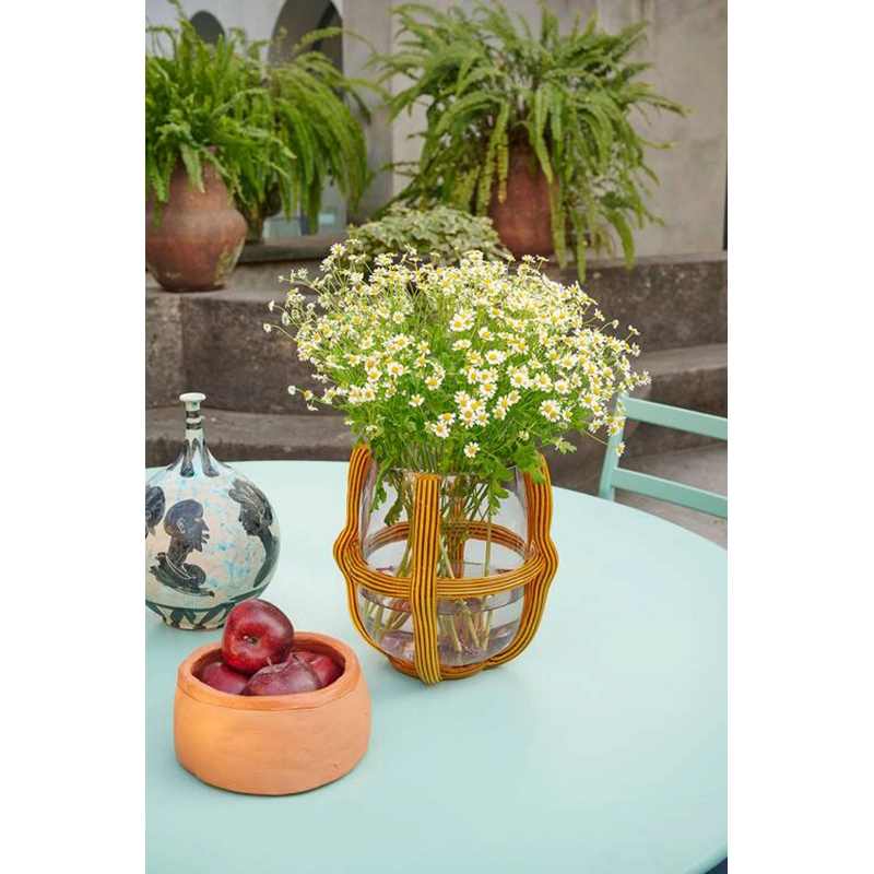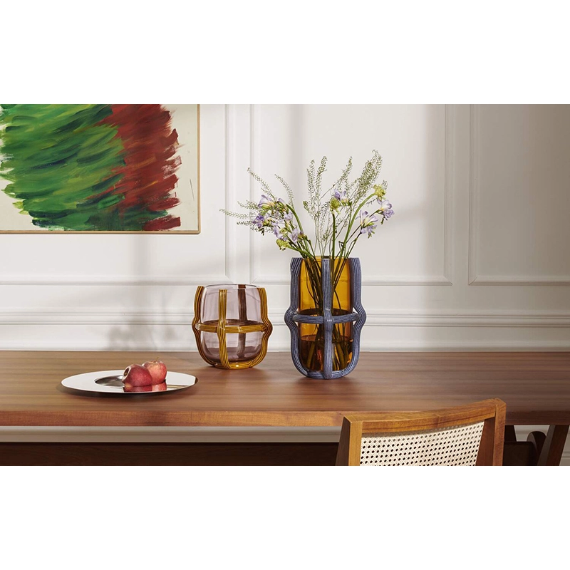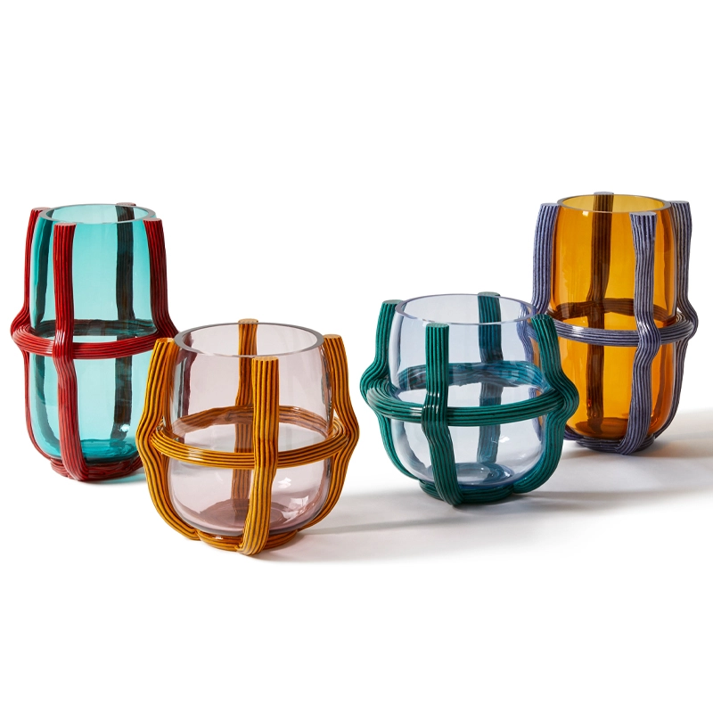 Les vases Sestiere combinent parfaitement design contemporain et les techniques artisanales très anciennes du travail du verre de Murano. Pensés par la designer Patricia Urquiola pour Cassina, ces vases colorés sont conçus avec une sphère de verre soufflé presque emprisonnée dans un trellis de cordes. Ces cordes, aussi appelées "morisa", sont délicatement déposées à la main à l'extérieur du vase et sont décorées motif rayé "rigadin" typique de la tradition muranaise. Les couleurs vives de la tradition rencontrent ainsi un design à la fois épuré, précis et graphique. Les vases Sestiere perpétue le savoir-faire traditionnel du verre tout en apportant une interprétation contemporaine, rendant ainsi un vibrant hommage à Venise. Le nom de la collection fait référence aux six quartiers qui composent la ville. Chaque vase est authentifié par le logo Cassina sablé sur le fond de sa base. La collection de vases Sestiere allie harmonieusement les deux langages esthétiques du verre et du cordage, créant des pièces uniques d'une grande beauté, témoignant de l'habileté et de la passion des artisans de Murano.