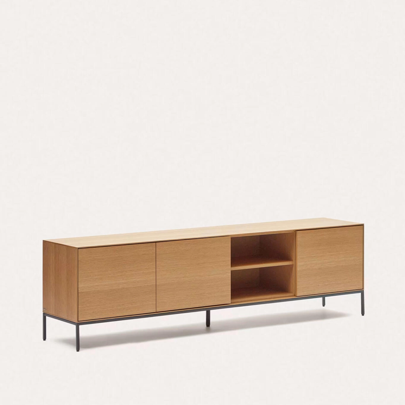 Vedrana est un meuble TV 3 portes en placage de chêne avec pieds en acier noir, conçu exclusivement par l’équipe de Kave Home. Il fait partie de la collection Vedrana, qui combine élégance, légèreté et fonctionnalité pour sublimer tous les espaces intérieurs. Les trois portes s’ouvrent par pression et sont équipées de charnières à fermeture douce pour un usage pratique et silencieux ... En savoir plus