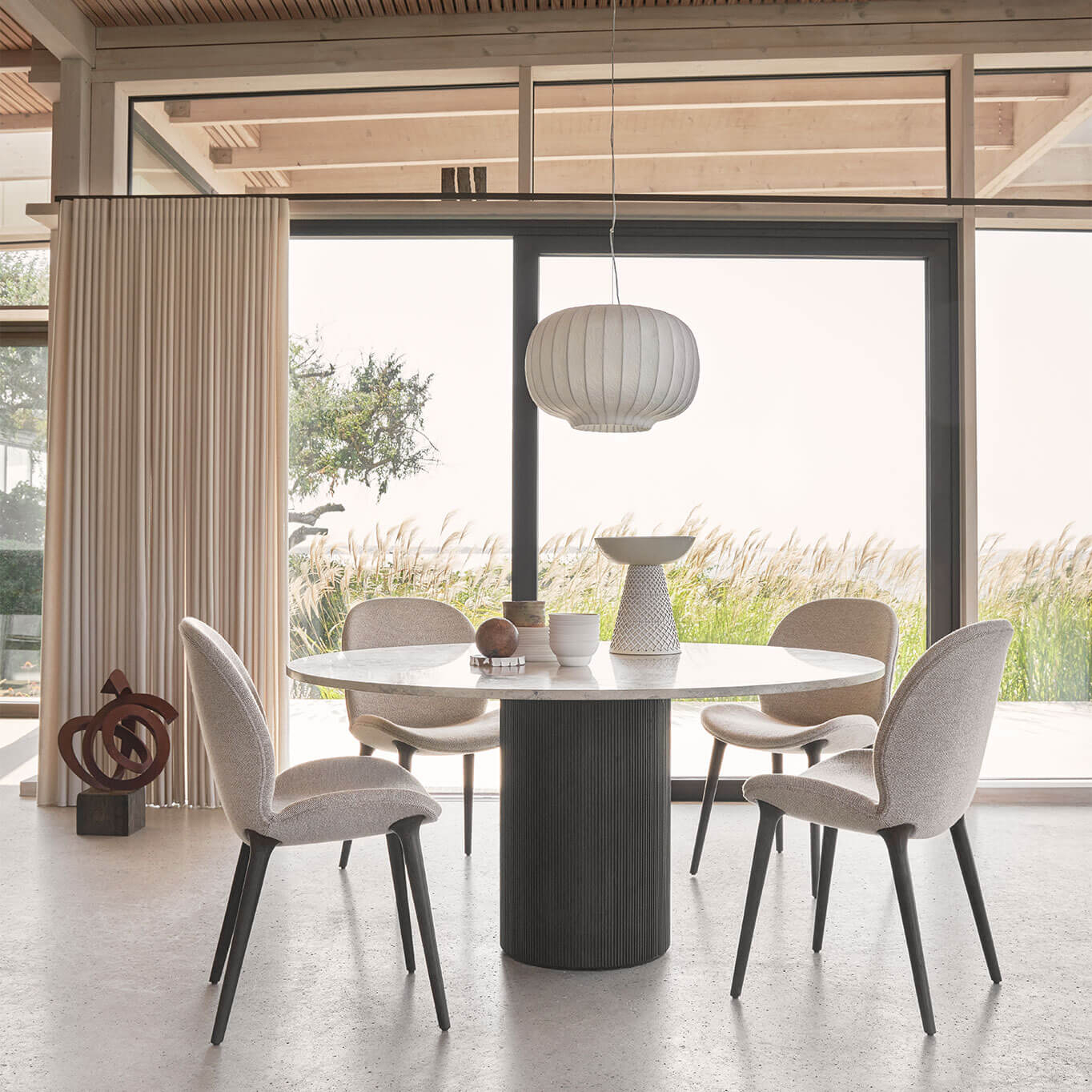 La chaise Lodge Vipp est idéale pour la salle à manger. Cette chaise est dotée d'une coque rembourrée et de pieds en chêne massif. La chaise LodgeVipp est présentée avec divers revêtement avec des pieds en chêne clair ou foncé. La gamme Lodge est une collection de meubles au rembourrage doux, composée d’une chaise à manger, d’une chaise lounge et d’un repose-pied. La collection Lodge a été créée à l'occasion de l'ouverture du Vipp Lodge, la quatrième chambre d’hôtel de la gamme de destinations hôtelières de la marque Vipp.