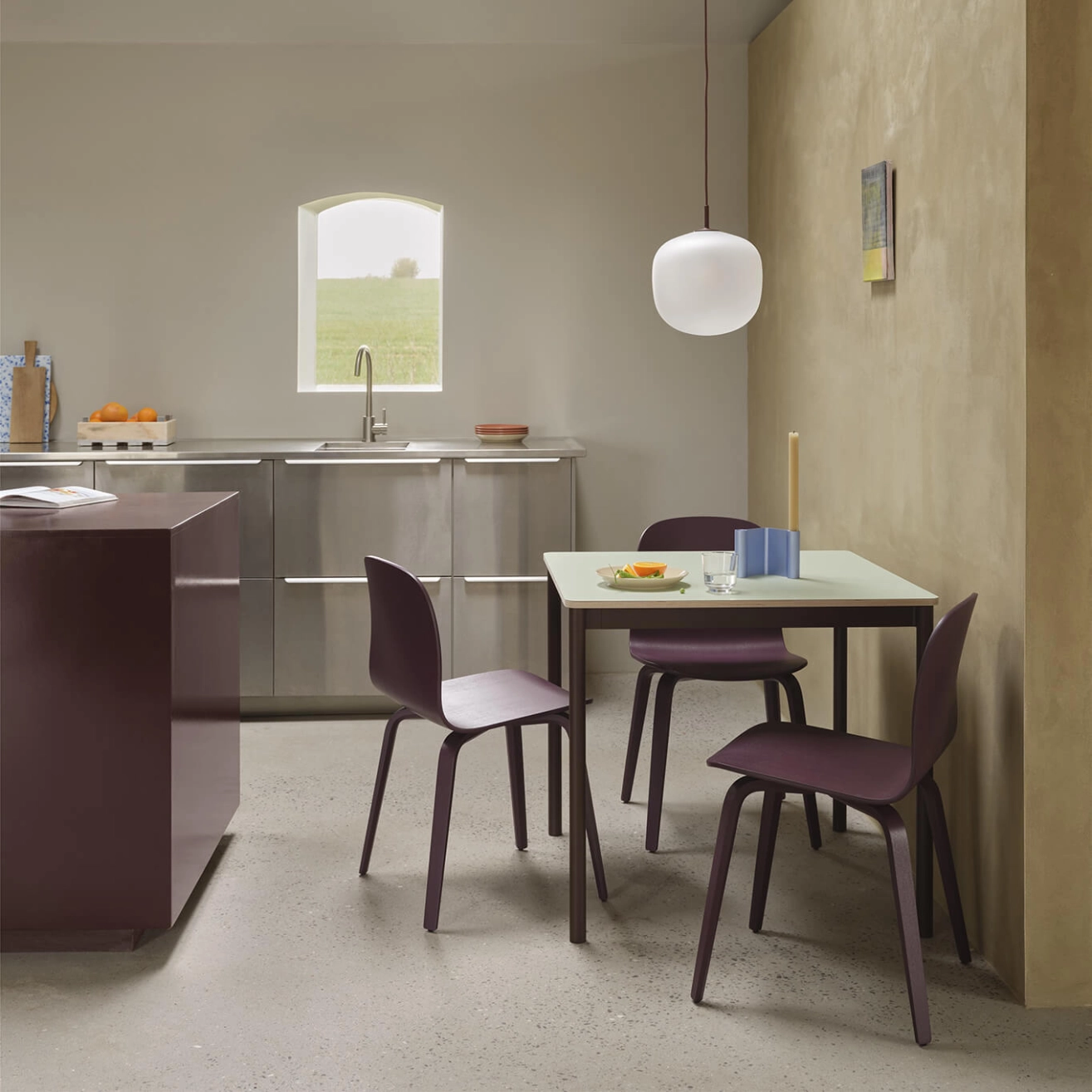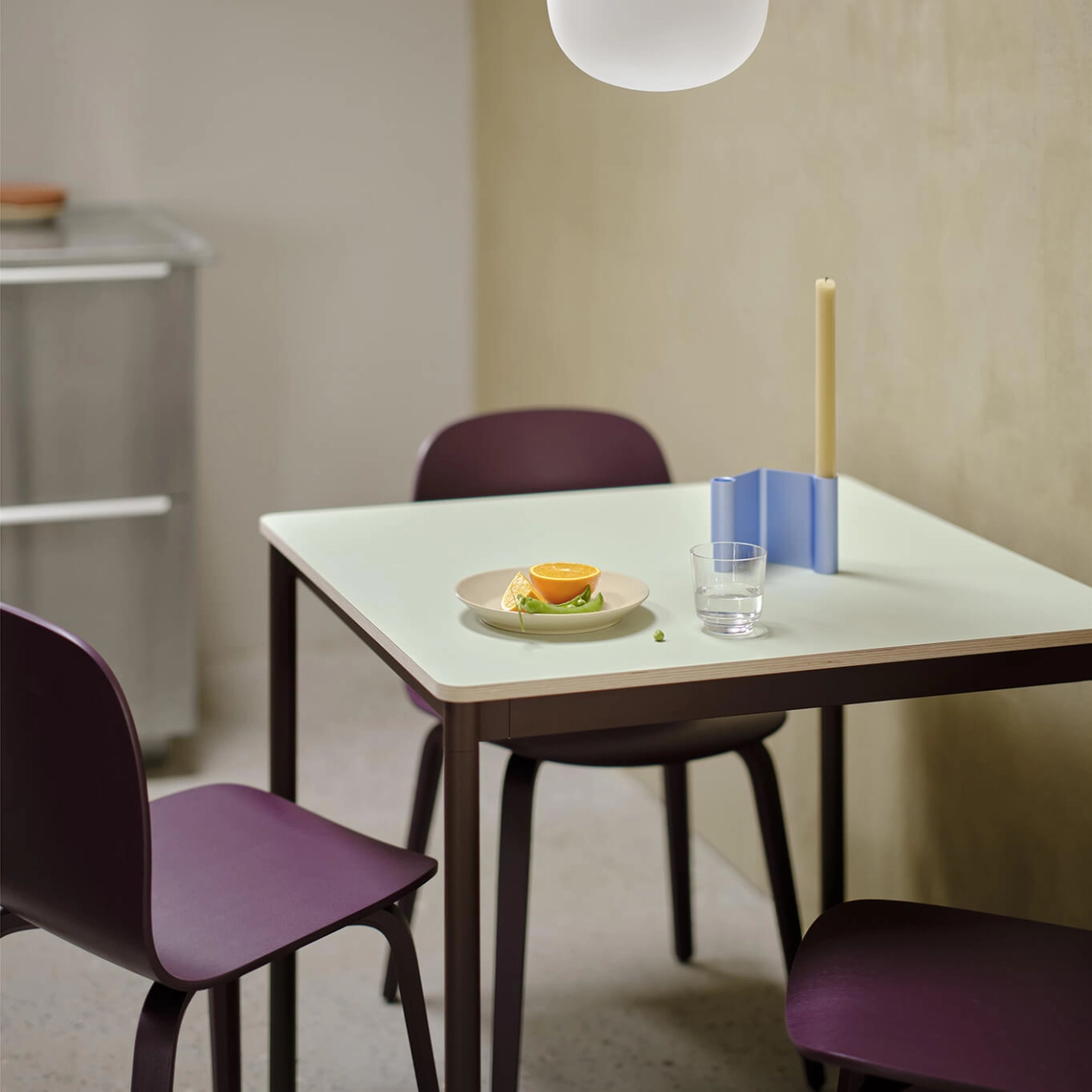 Visu est une collection de sièges dessinée par Mika Tolvanen pour Muuto. Après les paniers Restore, le designer réinterprète la traditionnelle chaise en contreplaqué moulé. Il crée ainsi une famille d'assises modernes pour différents usages : une chaise avec un piètement luge ou avec des pieds bois, une chauffeuse et un tabouret de bar. Ces sièges sont disponibles dans plusieurs couleurs de bois ou recouverts de tissu. Chacun peut ainsi trouver le fauteuil qui lui correspond ou créer des mélanges de couleurs de chaises à placer autour de la table de la salle à manger.