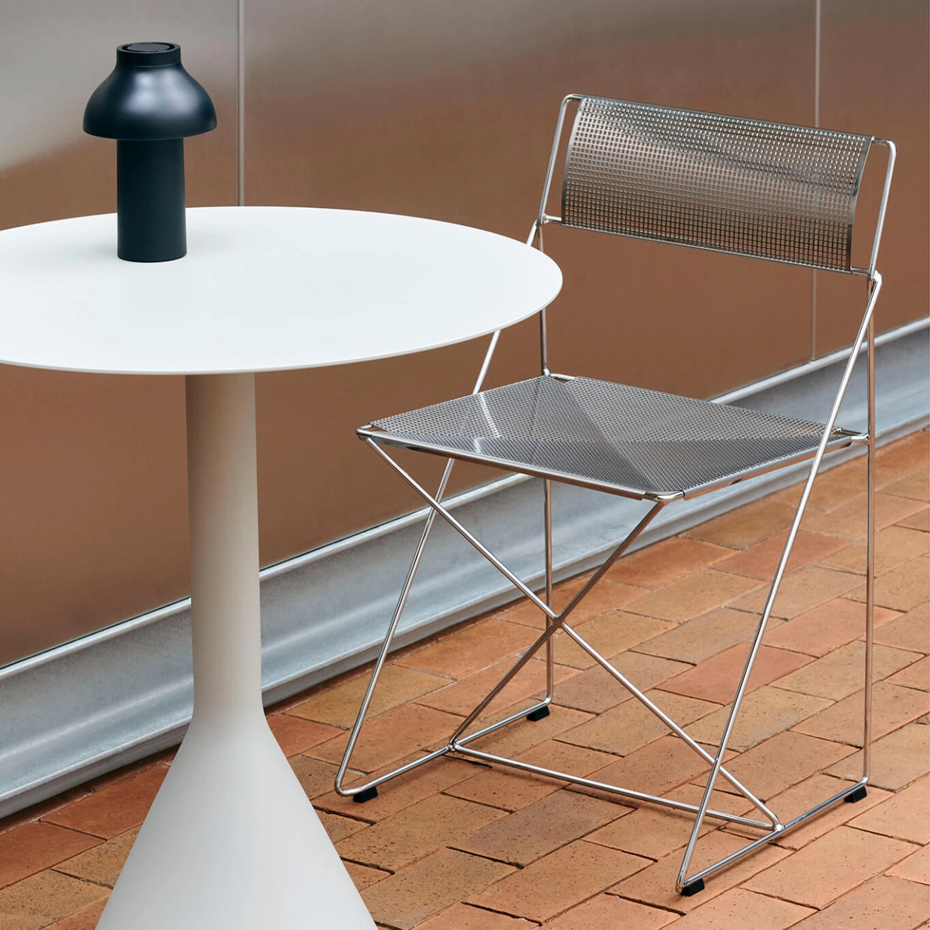 Créée à la fin des années 70 par Niels Jørgen Haugesen, la chaise X-Line s’inscrit désormais dans l’univers de HAY, qui réunit des designs originaux et intemporels. Conçue en fil métallique fin, elle allie une esthétique industrielle à une fabrication en acier de haute précision, incarnant parfaitement l’esprit du mouvement high-tech des années 1970. Son design minutieusement élaboré garantit une fonctionnalité optimale. Sa structure en X, fruit d’un processus de conception soigné, lui confère souplesse, solidité< et attrait visuel. Proposée avec une assise déclinée en plusieurs couleurs soigneusement sélectionnées et des pieds en acier chromé, la chaise X-Line reste fidèle à une approche de design simple et rationnelle, toujours d’actualité. Son apparence épurée, combinée à sa robustesse et à son caractère empilable, en fait une solution d’assise polyvalente, parfaitement adaptée aux environnements privés comme professionnels en intérieur.
