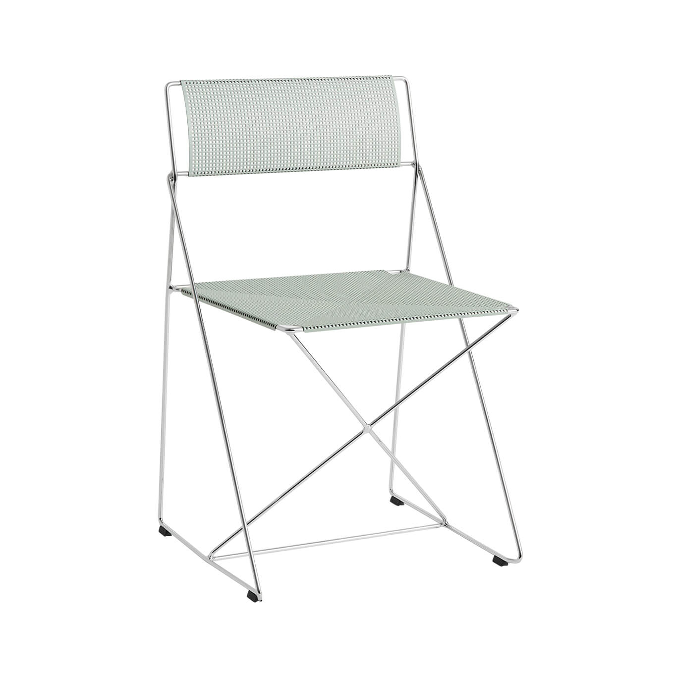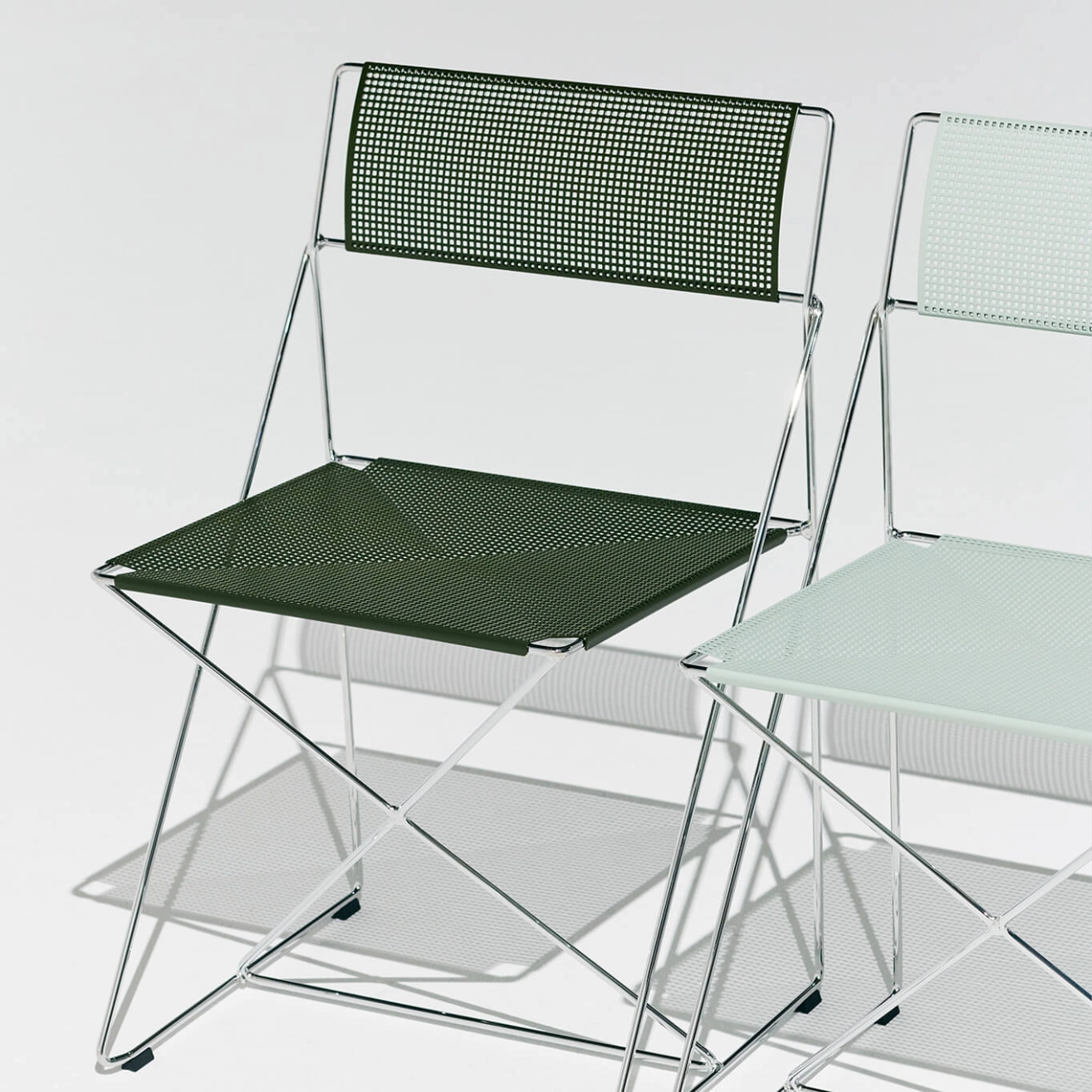 Créée à la fin des années 70 par Niels Jørgen Haugesen, la chaise X-Line s’inscrit désormais dans l’univers de HAY, qui réunit des designs originaux et intemporels. Conçue en fil métallique fin, elle allie une esthétique industrielle à une fabrication en acier de haute précision, incarnant parfaitement l’esprit du mouvement high-tech des années 1970. Son design minutieusement élaboré garantit une fonctionnalité optimale. Sa structure en X, fruit d’un processus de conception soigné, lui confère souplesse, solidité< et attrait visuel. Proposée avec une assise déclinée en plusieurs couleurs soigneusement sélectionnées et des pieds en acier chromé, la chaise X-Line reste fidèle à une approche de design simple et rationnelle, toujours d’actualité. Son apparence épurée, combinée à sa robustesse et à son caractère empilable, en fait une solution d’assise polyvalente, parfaitement adaptée aux environnements privés comme professionnels en intérieur.
