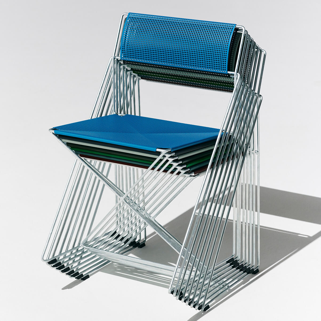 Imaginée à la fin des années 70 par Niels Jørgen Haugesen, la chaise X-Line s’intègre désormais dans l’univers de HAY, qui met en avant des créations originales et intemporelles. Conçue en fil métallique fin, elle allie une esthétique industrielle à une construction en acier de haute précision, illustrant parfaitement le mouvement high-tech des années 1970. Grâce à une conception soigneusement étudiée, elle offre une fonctionnalité optimale. Son design aboutit à une structure en X caractéristique, qui apporte à la fois souplesse, solidité et charme visuel. Proposée dans une gamme de couleurs et de finitions rigoureusement sélectionnées, la chaise X-Line reste fidèle à un design sobre et cohérent, toujours d’actualité. Son allure minimaliste, combinée à sa robustesse et à sa capacité d’empilage, en fait une solution d’assise polyvalente, parfaitement adaptée aux espaces privés comme professionnels, aussi bien en intérieur qu’en extérieur.