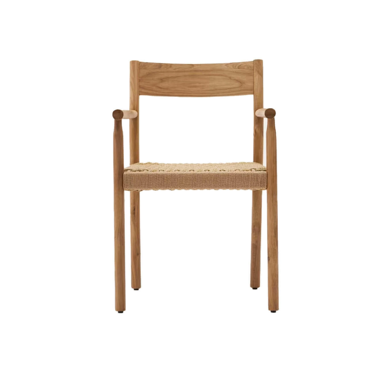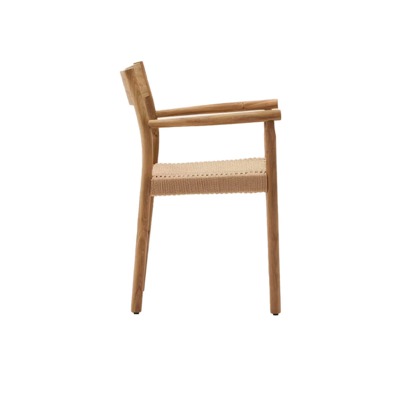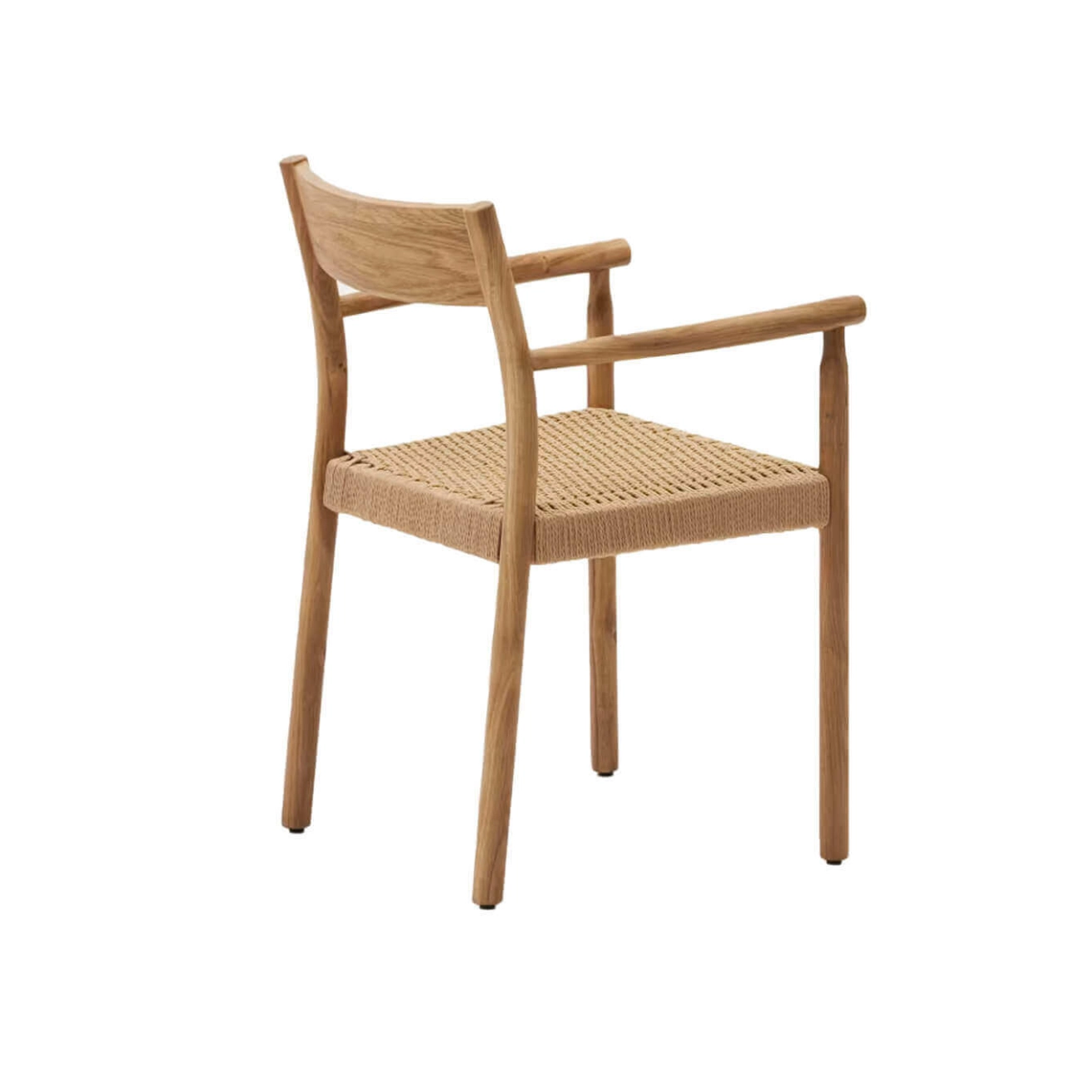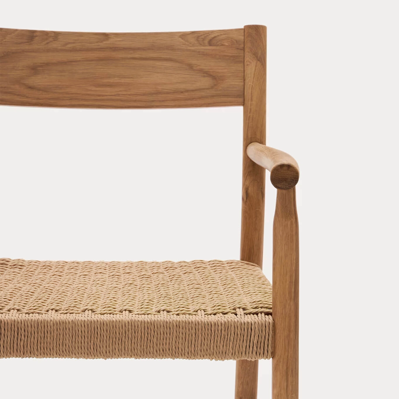 Yalia est une chaise en bois de chêne avec finition naturelle et siège en corde de papier tressée à la main, faisant partie de la collection
