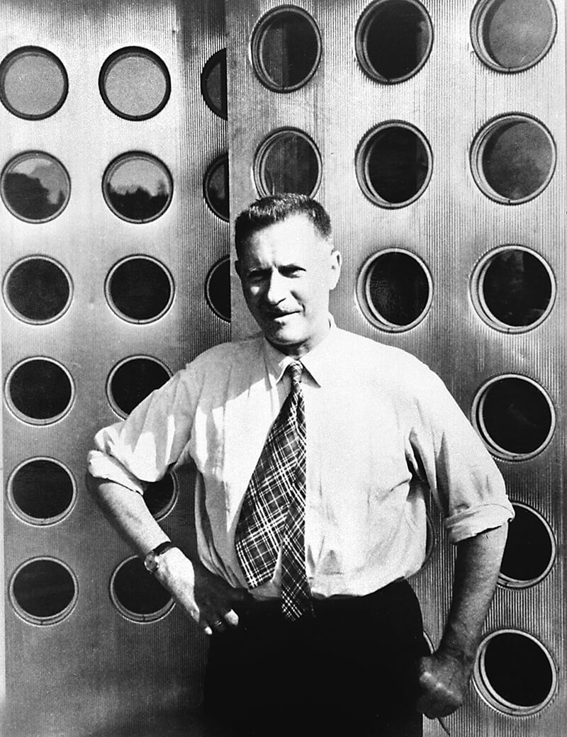 Jean Prouvé (1901-1984) est une figure incontournable du design et de l'architecture du XXe siècle. Formé comme apprenti orfèvre chez Émile Robert à Enghien puis chez Szabo à Paris, il poursuit ses études à l’École supérieure de Nancy, où il développe une passion pour les matériaux et la construction. Dès 1923, il se démarque comme constructeur-concepteur avec une œuvre alliant fonctionnalité, utilité et beauté, en mettant l’accent sur une esthétique de la nécessité.