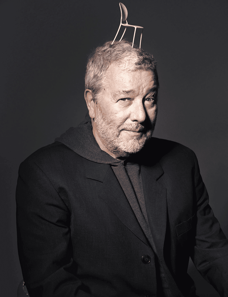 Son travail se caractérise par une grande diversité de styles, mais aussi par une approche démocratique du design. Il cherche à rendre le design accessible à tous, tout en apportant une touche de sophistication et d’irrévérence. Des créations iconiques comme la chaise Louis Ghost, une réinterprétation moderne du fauteuil baroque en polycarbonate transparent, montrent sa capacité à réconcilier tradition et innovation.