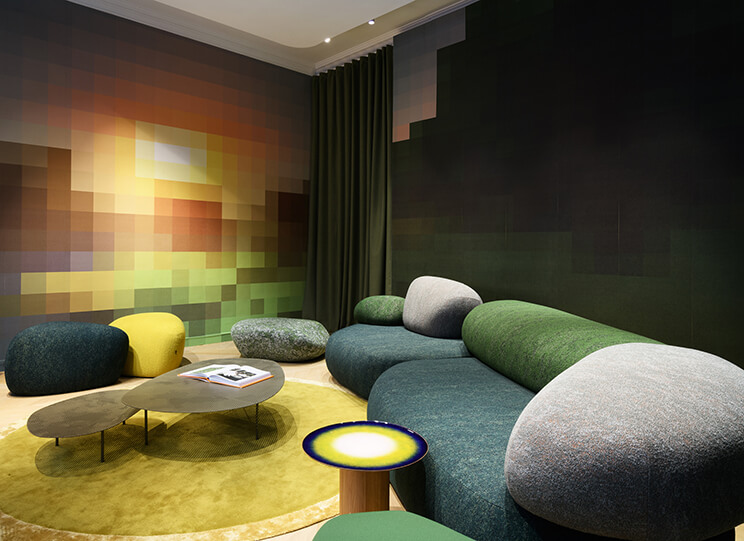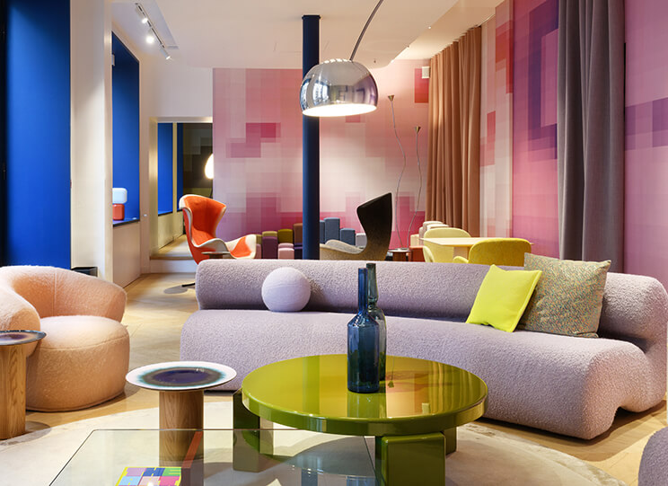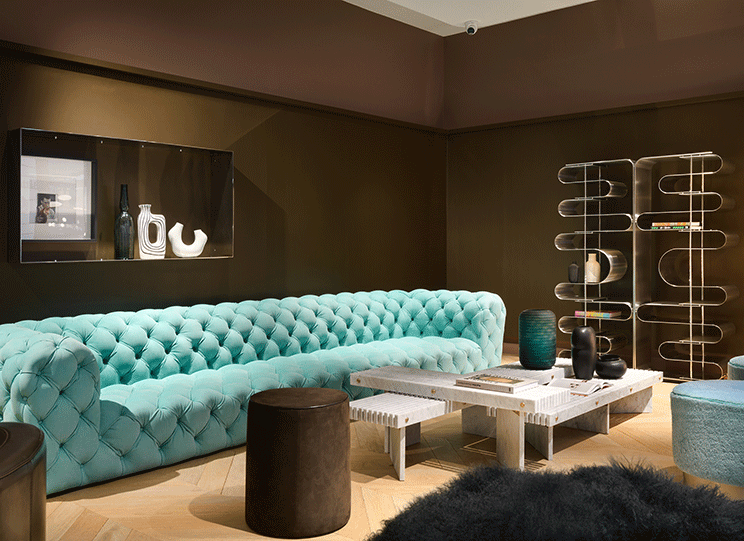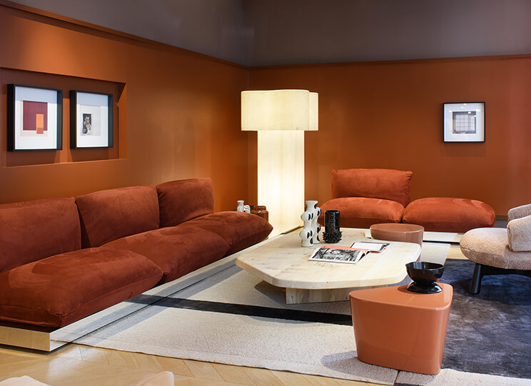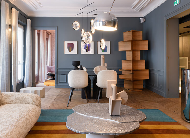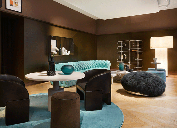 Deux étages qui servent d’écrin à des marques et designers choisis comme si vous étiez dans un appartement parisien avec des marques telles que Tacchini avec des pièces de Tobia Scarpa, David et Nicolas, Gordon Guillaumier, Studio Pepe, DeSede et le DS, Gallotti&Radice et Massimo Castagna, etc. Des luminaires de Lambert & Fils , Ingo Maurer ou Gubi et plusieurs jeunes talentueux éditeurs comme Youth Editions y sont aussi mis en avant.